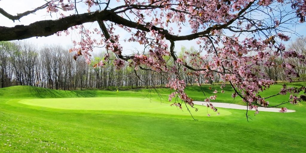 在球场可看到从惠庭岳至余市岳,近郊群山的壮丽景观,春天有山樱花街道,夏季绿意盎然的景色及秋季的红叶美景更是推荐的路线。